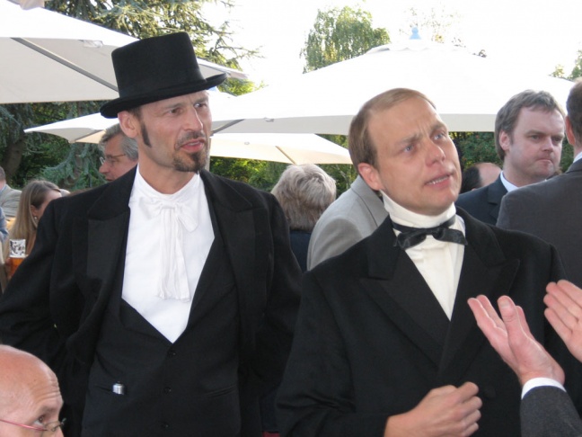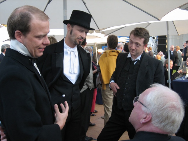 Eindrucksvoll in originalen Kostümen traten die 3 Erfinder in Erscheinung und präsentieren sich sowie ihre Erfindungen den eintreffenden Gästen - ein gute Gelegenheit sich kennen zu lernen. Im weiteren Verlauf stellten sie sich und ihre damaligen Arbeitsbedingungen wortgewandt im Stile der Epoche vor und verwickeln die Gäste in ihre spannende Geschichte, wobei hier die historische Stromversorgung immer wieder eine Rolle spielte. In der dritten Phase präsentierten die Erfinder Leucht-Apparate der Neuzeit und erklären die erstaunlichen Neuerungen. Somit konnten die Gäste bei diesen Auftritten imposant der „Entwicklung des Lichts“ folgen und wurden dabei bestens unterhalten.